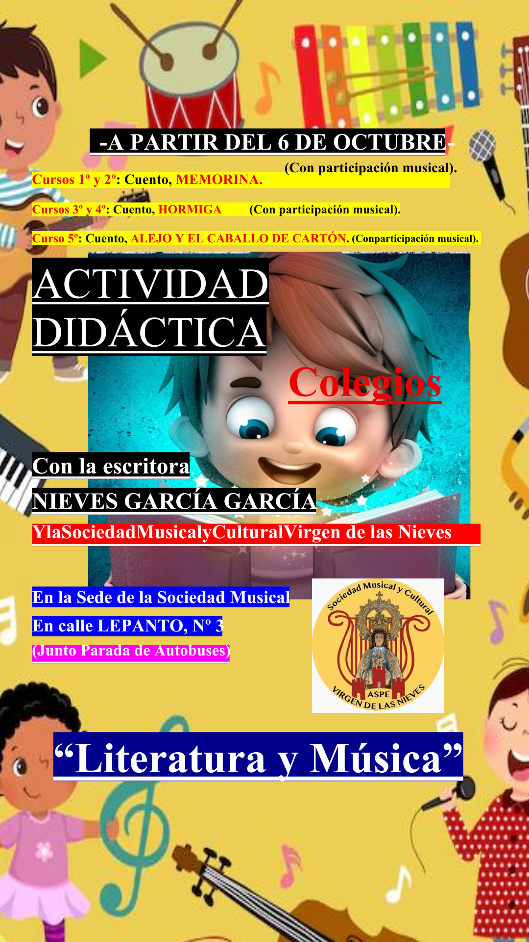 cuento. Aportando la sociedad musical el complemento necesario para enlazar la literatura con el