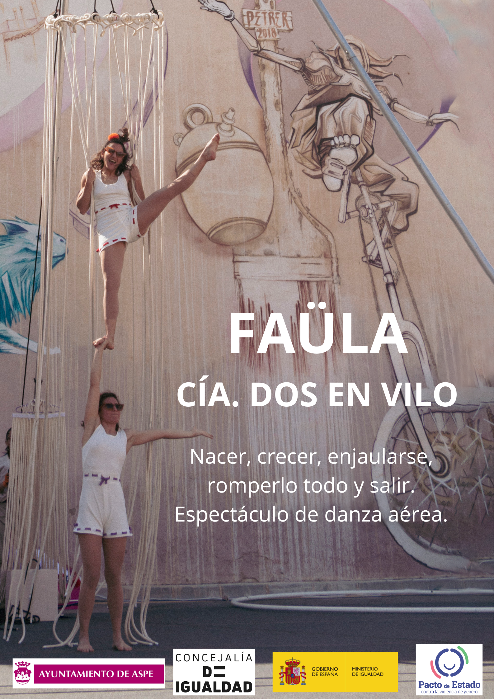 Espectáculo de danza aérea, teatro y clown en el patio del centro educativo.