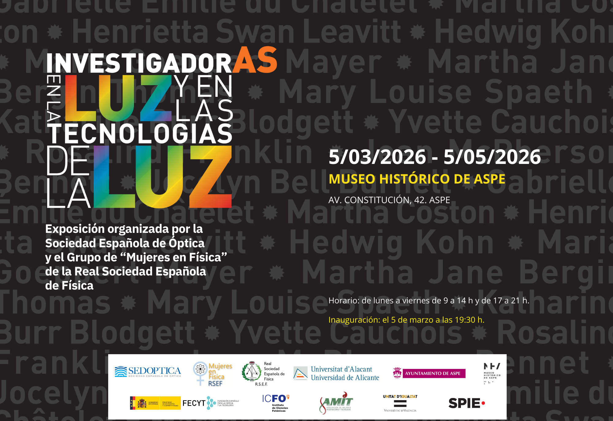 Homenaje a doce científicas, y a través de ellas a todas las investigadoras que han trabajado en las ciencias de la luz, la óptica y las tecnologías basadas en la luz.