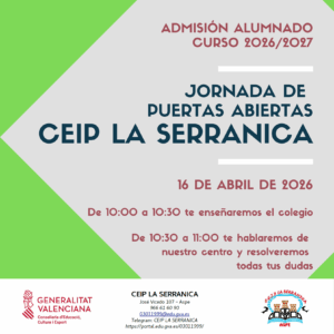 JORNADA DE PUERTAS ABIERTAS CEIP LA SERRANICA CURSO 2026/2027